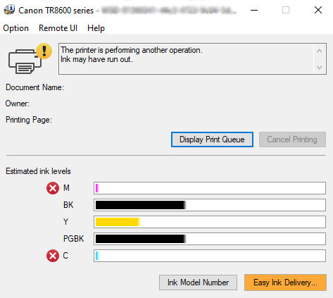 Located within your printer’s driver or within the printer details of the Canon INKJET/SELPHY app, you’ll find the Easy Ink Delivery (EID) service, which is designed to automatically alert you when your printer is low on genuine Canon ink, and to provide direct access to the Canon online Store. If you click on Easy Ink Delivery (or “Order ink” within the Canon INKJET/SELPHY app) you will be taken to the Canon online store page with a listing of all the genuine Canon inks that are compatible with your printer. Based on low ink level status communicated by the EID system, the page will display which genuine Canon ink(s) you are out of, so you can easily add the appropriate ink(s) to your shopping cart.