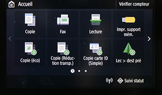 - À partir de l’écran d’accueil 1, appuyez sur la flèche droite pour accéder à l’écran d’accueil 4, ensuite sur l’icône des « Réglages de livraison de toner ».