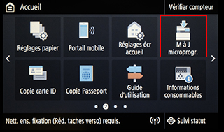 - À partir de l’écran d’accueil 1, appuyez sur la flèche droite pour accéder à l’écran d’accueil 2, puis sur l’icône de mise à jour du micrologiciel.