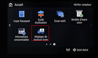 - Appuyez sur l’icône de « Réglages de livraison toner ».