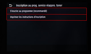 - Appuyez sur « S’inscrire au programme de service de réapprovisionnement en toner ».