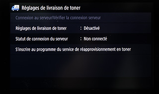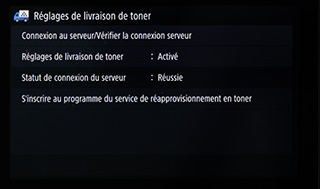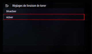 - Appuyez sur « Réglages de livraison de toner : Désactivé ».