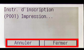 - Sélectionnez « Fermer » pour continuer ou « Annuler » pour arrêter l’impression.